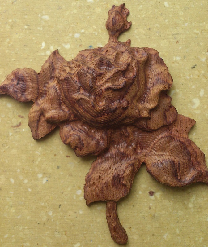 2. На этой обработке использовали фрезу 2мм, - эта обработка может быть недостаточной, т.к. 3d модель имеет очень высокую детализацию и не все прожилки будут видны, однако, качество поверхности уже получилось хорошее, в большинстве случаев для фрезеровки дерева этого качества достаточно.